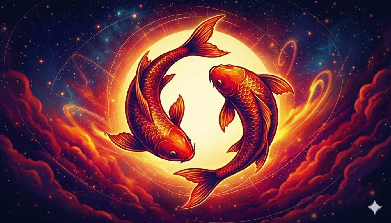Dos Peces ♓ conectados por una cuerda, a menudo nadando en direcciones opuestas, lo que refleja un tira y afloja constante entre la fantasía y la realidad.